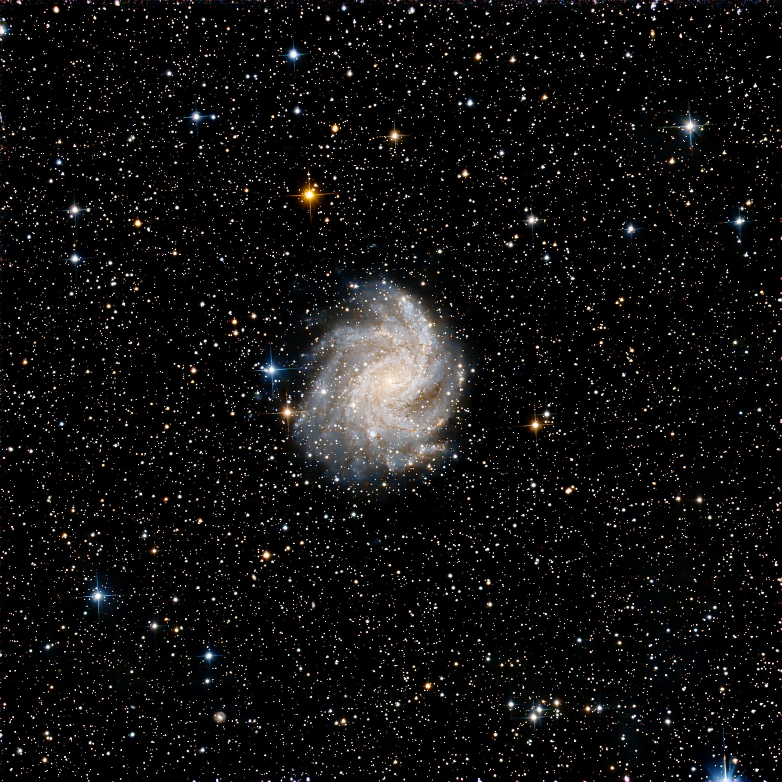 NGC 6946, aussi nommée la galaxie du Feu d’artifice[6],[4] (ou Caldwell 12), est une galaxie spirale intermédiaire rapprochée et située dans la constellation du Cygne. NGC 6946 a été découverte par l’astronome germano–britannique William Herschel en 1798.